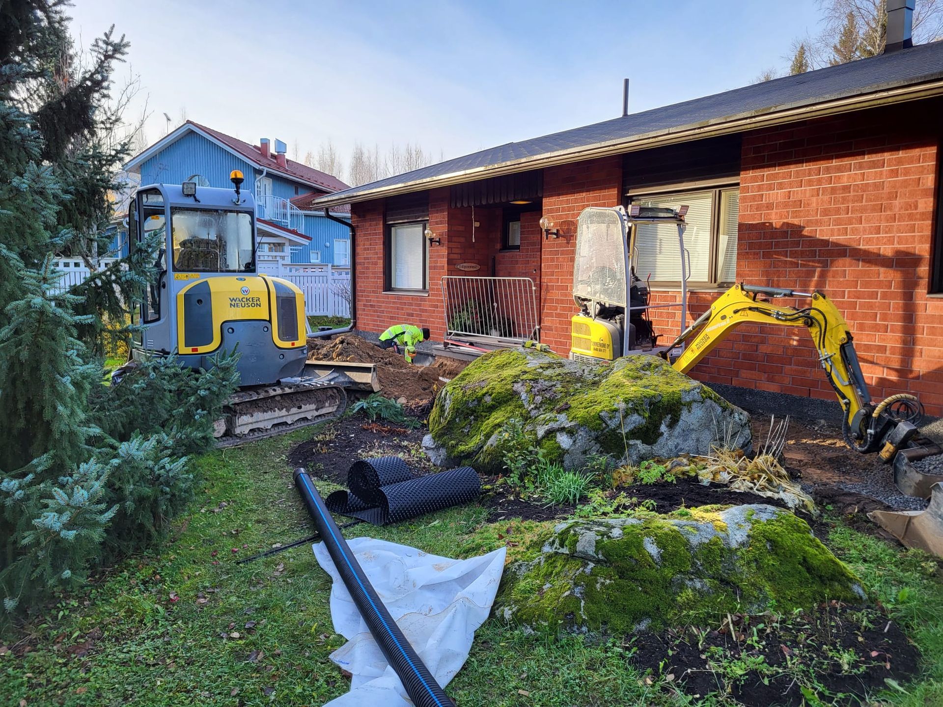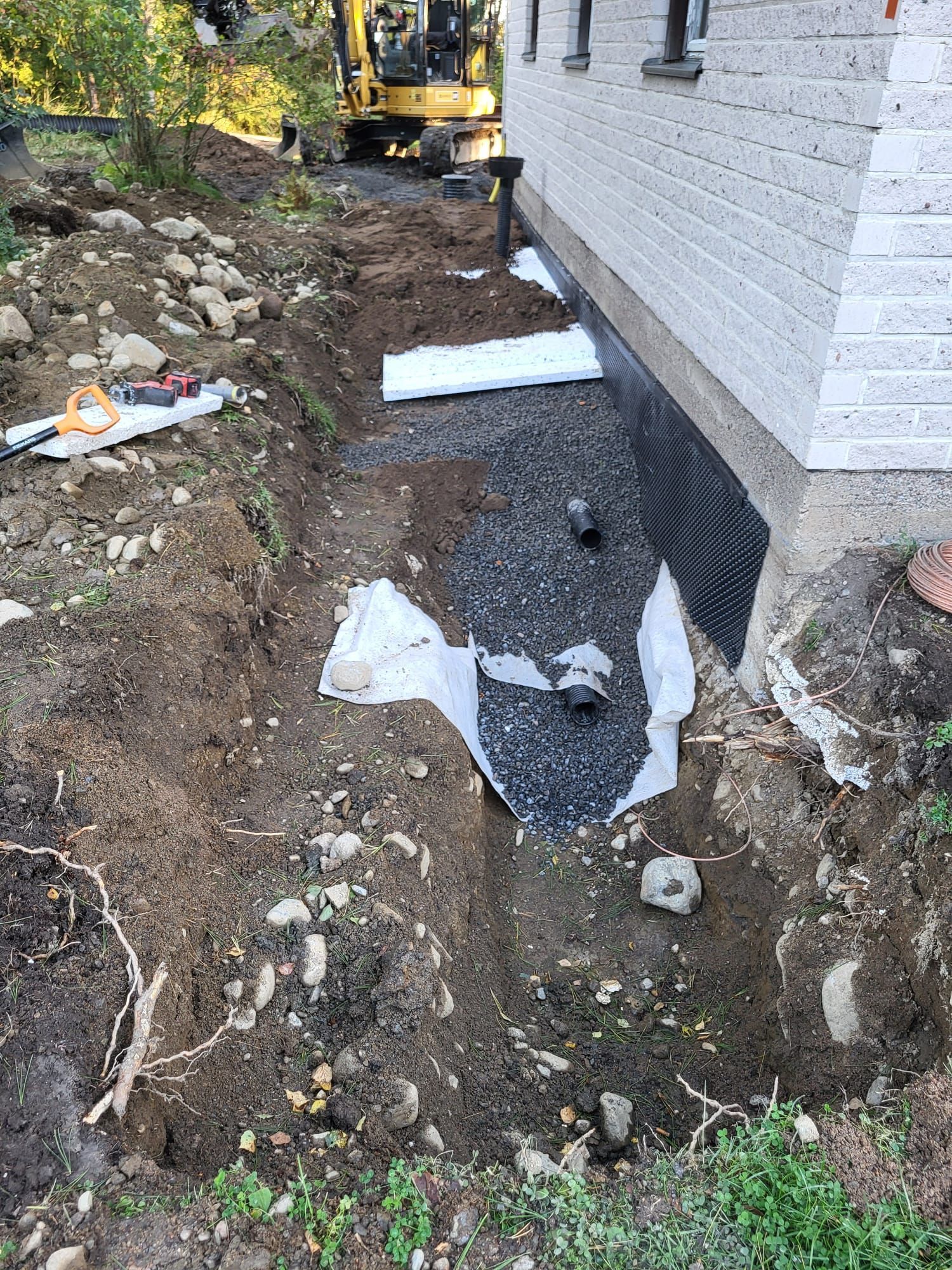 Olemme toteuttaneet salaojituksia ja salaojaremontteja lukuisissa eri kohteissa, kuten kouluissa, kerros- ja omakotitaloissa, rivitalopihoilla, päiväkotityömailla ja pysäköintialueiden kunnostuksissa, joissa perustusten kuivatuksella on keskeinen merkitys. Tunnemme Pirkanmaan vaihtelevat maaperät – saven, moreenin, hiekka- ja kivikkoalueet – ja osaamme huomioida ne salaojituksen suunnittelussa, putkikokojen valinnassa, sorastuksessa ja kaatojen toteutuksessa. Työ tehdään aina suunnitelmallisesti, noudattaen rakennusmääräyksiä ja hyväksi havaittuja käytäntöjä sekä oikeita kallistuksia, jotta uusi salaojajärjestelmä toimii pitkään ja luotettavasti.